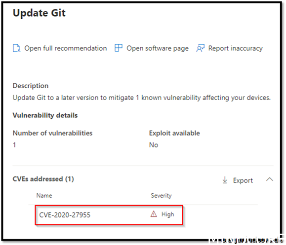 It says this particular CVE allows Remote Code Execution. We do not like that! Let’s send a request to our desktop team to update the app “Update GIT” and patch our device.