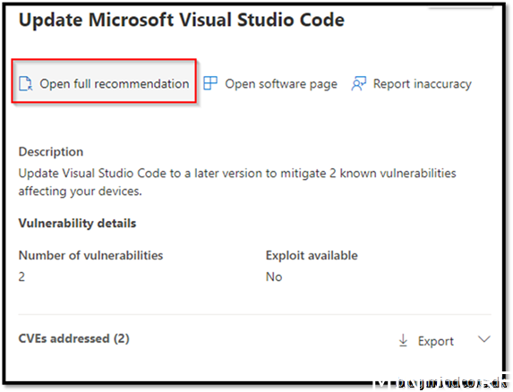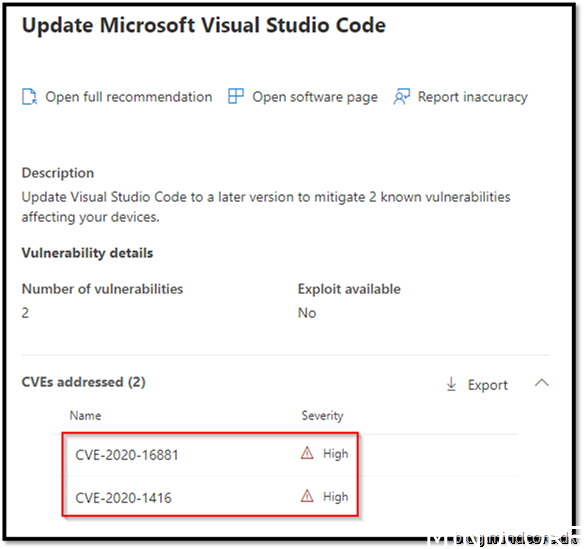 Security Recommendation 2 Update Microsoft Visual Studio Code.