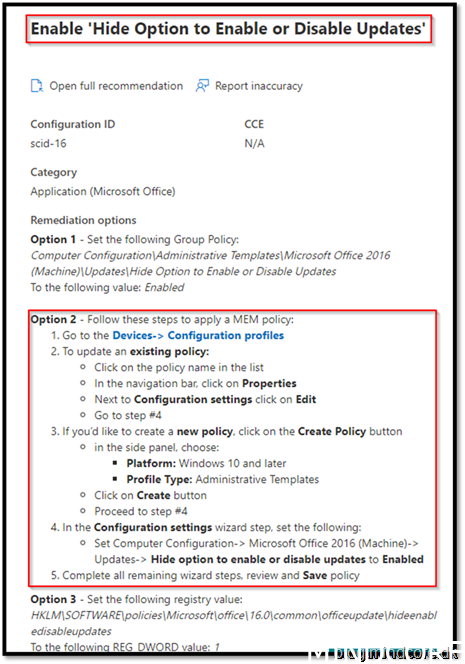Security Recommendation 3 Enable ‘Hide Option to Enable or Disable Updates’