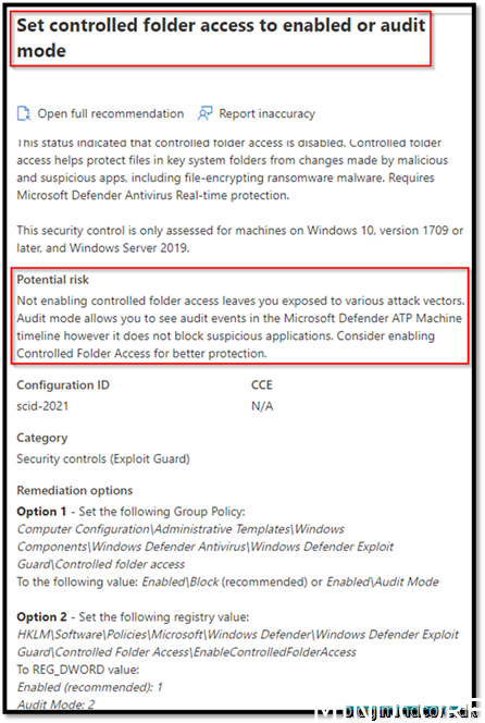 Security Recommendation 7 Set controlled folder access to enabled or audit mode