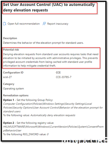 Security Recommendation 9 Set User Account Control (UAC) to automatically deny elevation requests
