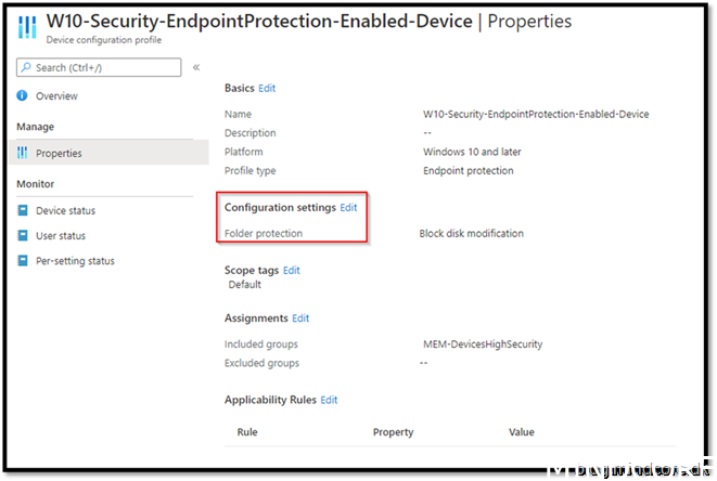 Edit W10-Security-EndpointProtection-Enabled-Device that we created earlier.