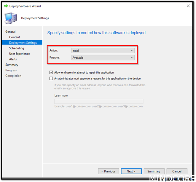Install and make it available. Click Next (You could also make it required to push the software, but you should never do that to all devices or all users before thorough testing.)