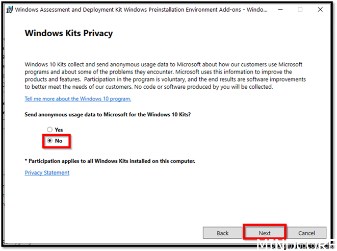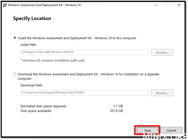 You can do this on your host machine but if you don’t like to spend 5 GB on installing ADK, then find a server or another device to do the following steps. Just be aware that the function to create USB drive will not work on a server OS.