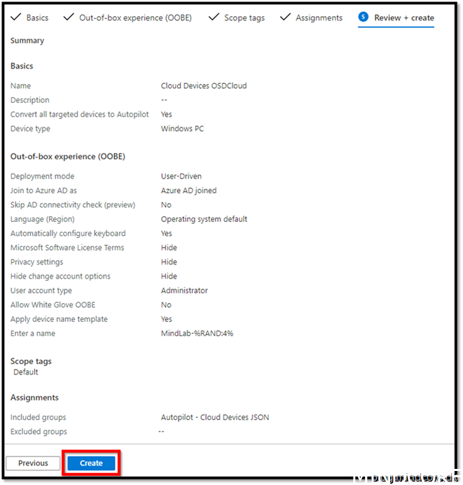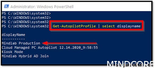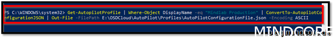 Get-AutopilotProfile | Where-Object DisplayName -eq “Mindlab Production” | ConvertTo-AutopilotConfigurationJSON | Out-File -FilePath E:OSDCloudAutoPilotProfilesAutoPilotConfigurationFile.json -Encoding ASCII