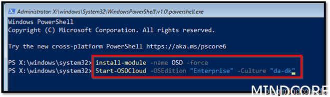 Start-OSDCloud -OSEdition “Enterprise” -Culture “da-dk”