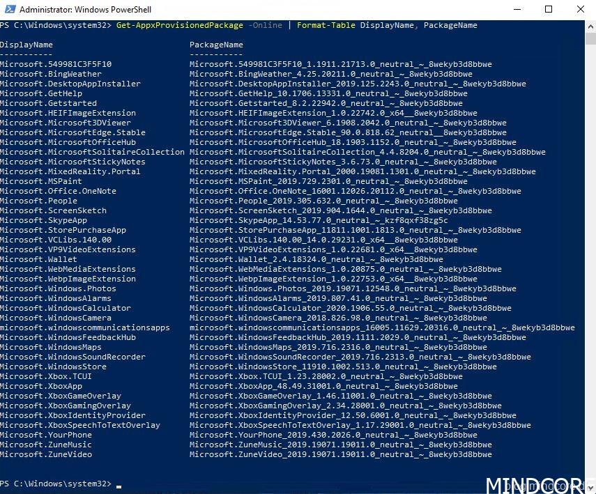 Get-AppxProvisionedPackage -Online | Format-Table DisplayName, PackageName