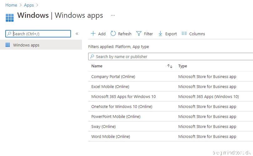 Aside from the Company Portal (Online) and Microsoft 365 Apps for Windows 10, this is pretty much how it looks like after the first sync between Intune and Microsoft Store for Business.