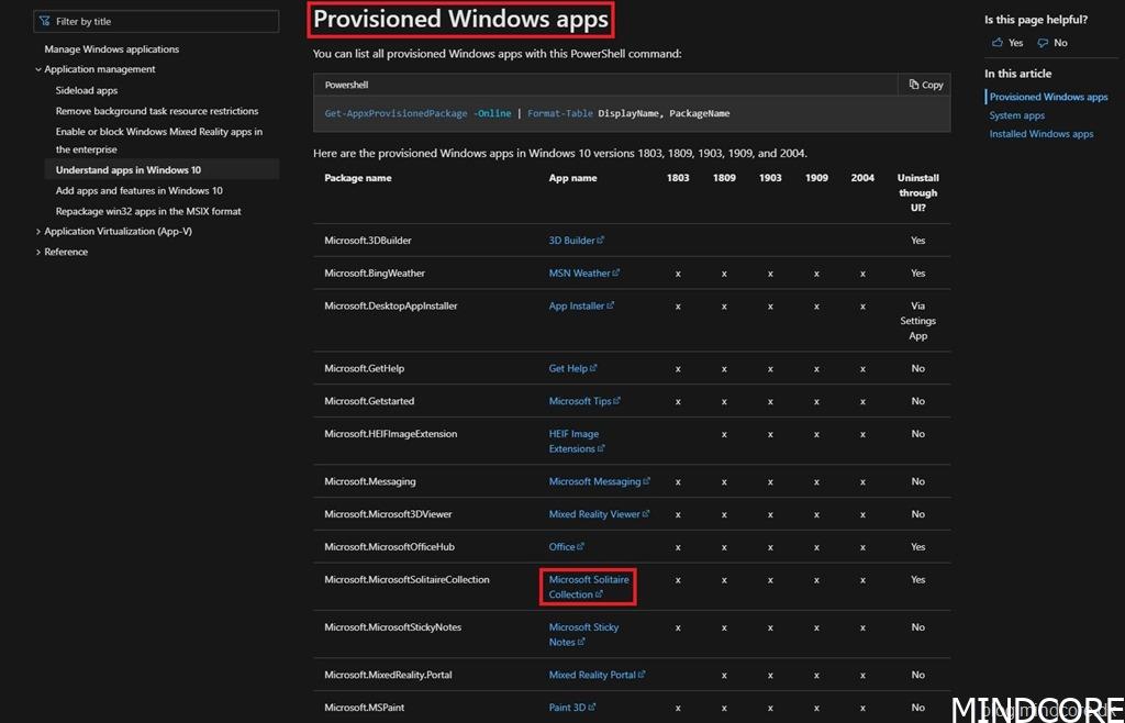 Visit the Microsoft Docs to see all provisioned Windows apps – Understand the different apps included in Windows 10