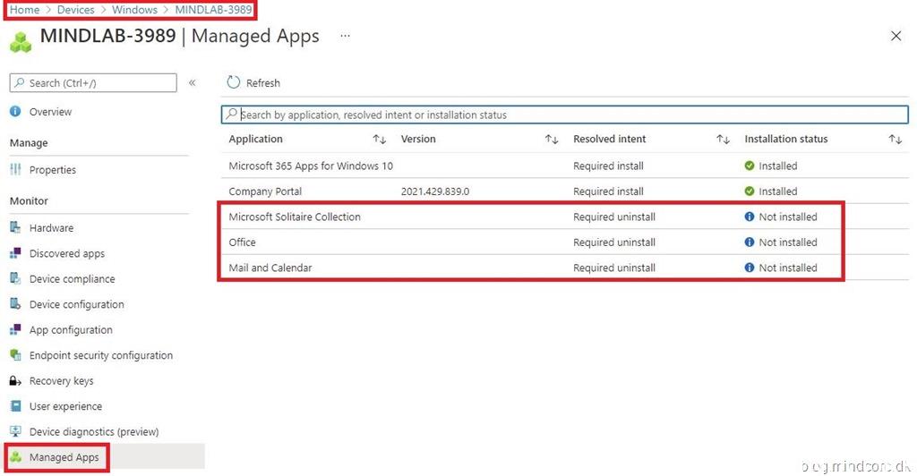 Click on your Windows 10 client and select “Managed Apps” in the “Monitor” section.