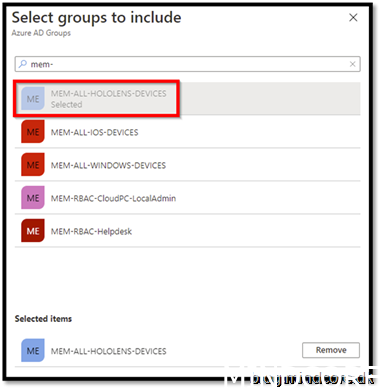 If you do not already have a group for HoloLens’s, you can create one and preferable a dynamic group.