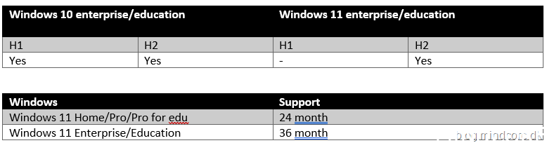 Windows 11 will only receive feature updates one per year where Windows 10 receive twice a year.