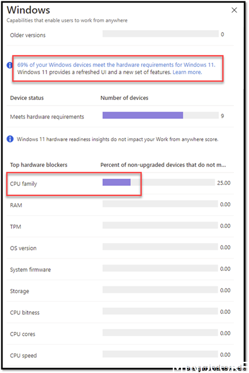 If you are licensed to Endpoint Analytics you easily get insight on your environment if devices are capable or non-capable to upgrade to Windows 11.
