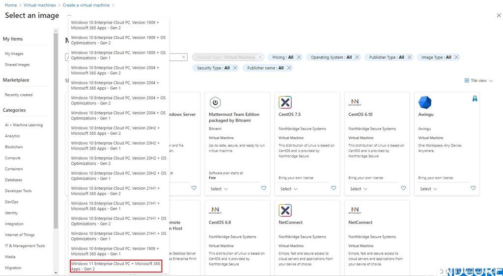 Select “Windows 11 Enterprise Cloud PC + Microsoft 365 Apps – Gen 2” from the list.