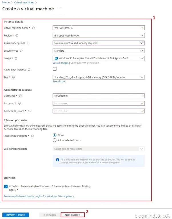 Note. It’s important that security type is set to “Standard” and that VM generation is “Gen 2”. – Microsoft does not support Gen 1 images as part of Windows 365 Enterprise.
