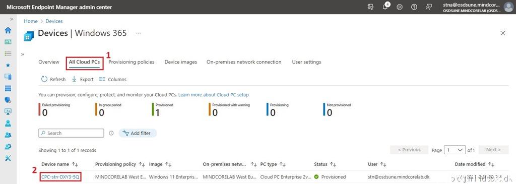 Click on Devices | Windows 365 | All Cloud PCs or Devices | Windows.