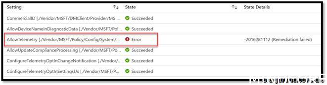 I recently configured some custom profiles in Microsoft Intune, and it turned out that one of the policies failed hard on all devices. I had not seen this error before and went to search on the big internet for the error code to understand more about the return code.