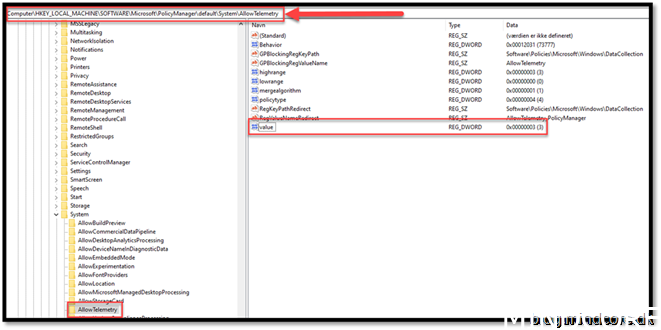 To troubleshoot further I went to the registry of a device and searched for “AllowTelemetry” until I found this
