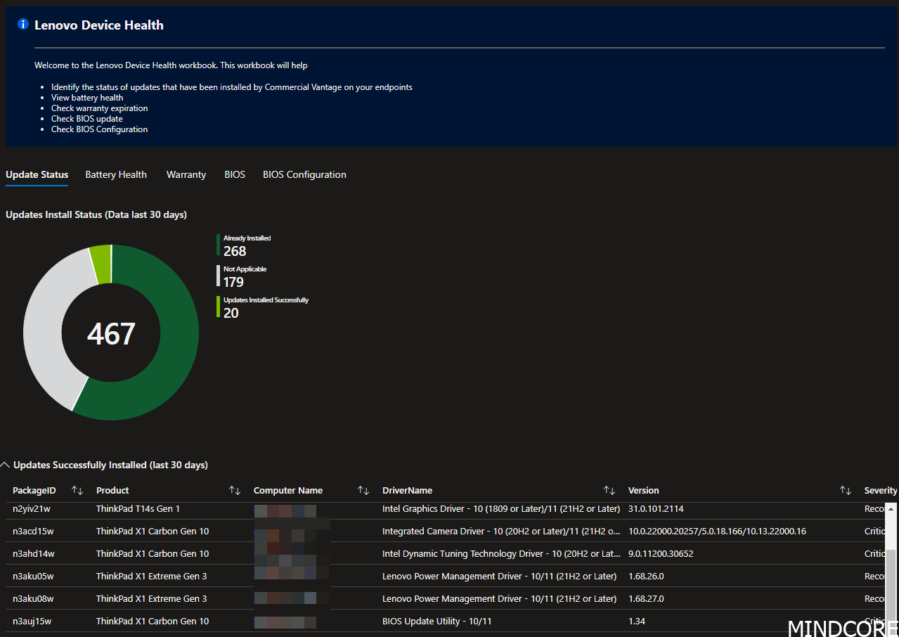 You see all your newly imported settings. To be able to get battery and warranty information’s we need a certain policy.