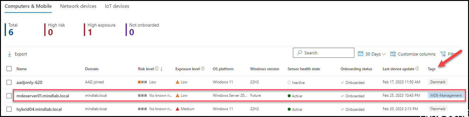 I have enabled the portal to let Intune be able to enforce security configurations to my MDE managed devices. In this case only Windows Servers and on “tagged” devices where they have the tag “MDE-Management”.