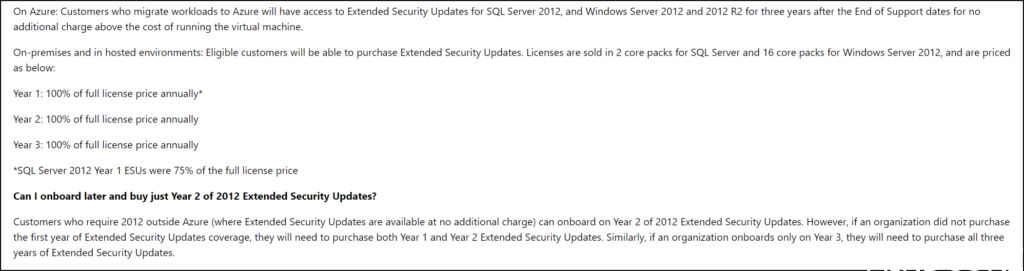 Pricing & FAQ: Extended Security Updates for SQL Server and Windows Server | Microsoft