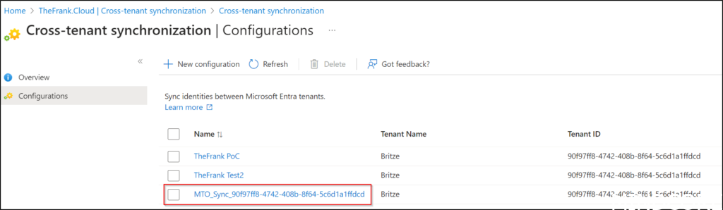 When a member tenant accepts the invitation (which requires an administrator to do so from within the M365 Admin Portal) a cross-tenant synchronization configuration is made prepended with ‘MTO-Sync_’ followed by the tenant ID of the Owner tenant: