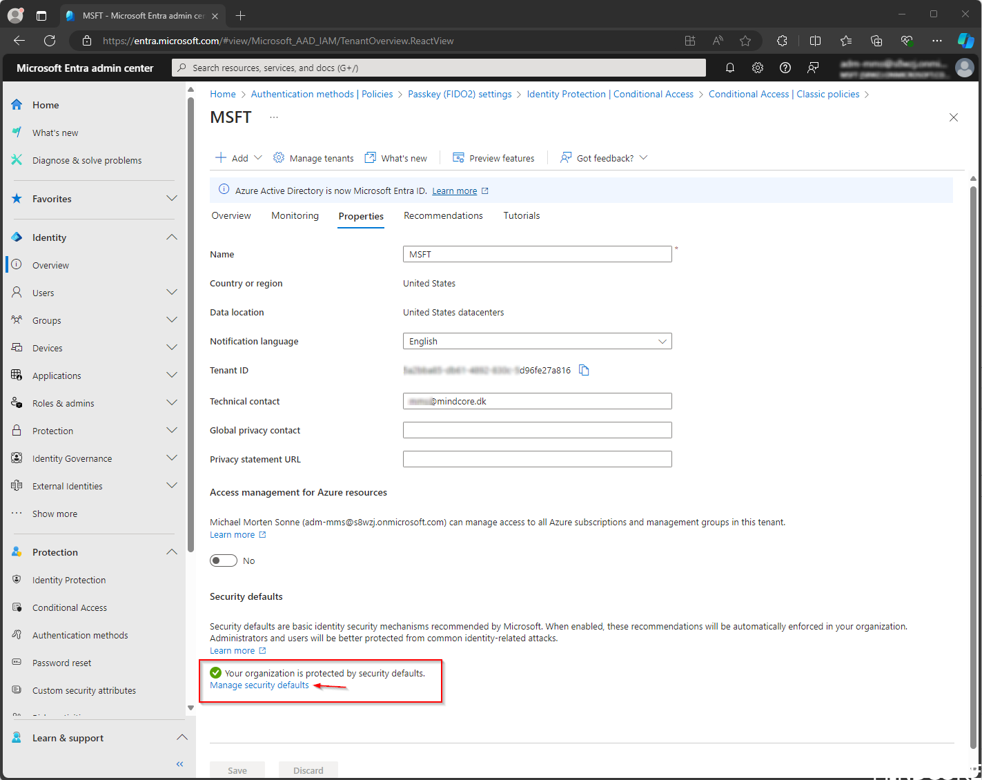 Organizations with Entra ID Free can easily enable Security Defaults to protect all users in their tenant.