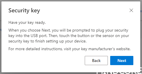 In the pop-up window, select Security key to begin setting up your key. Ensure that the key is inserted into your computer before proceeding.