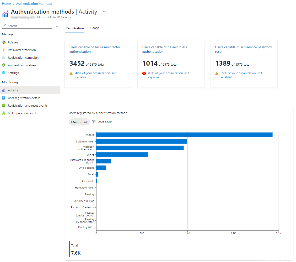 - Users capable of passwordless authentication: Users capable of passwordless authentication: Users registered and enabled for at least one of the following passwordless authentication methods: FIDO, Windows Hello for Business, or Passwordless Phone Sign-in.