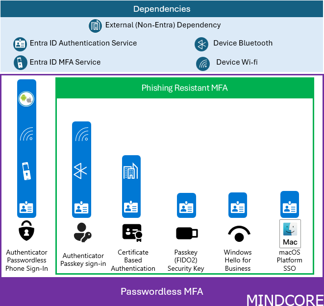 FIDO2 is a strong, phishing-resistant authentication method that offers enhanced security. A key point often overlooked is the strength of MFA methods and their dependence on specific services. The illustration from Build resilience with credential management in Microsoft Entra ID – Microsoft Entra | Microsoft Learn shows that a FIDO2 key is a robust choice for securing your critical break the glass accounts, even though it doesn’t show the user’s device.