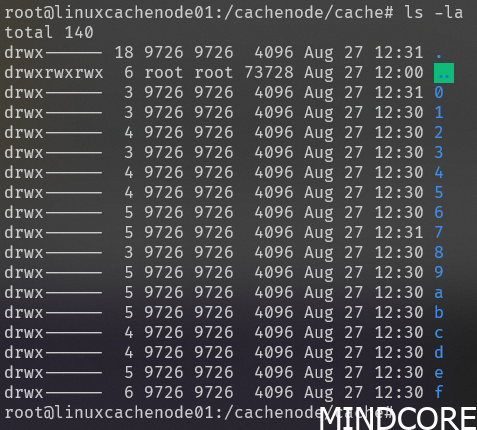 On the cache node within the folder we specified earlier in the configuration we can start seeing folders being created with binary blobs in them: