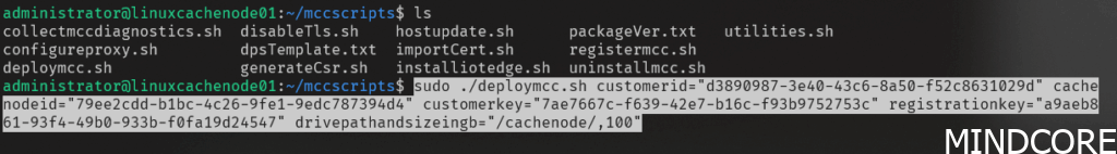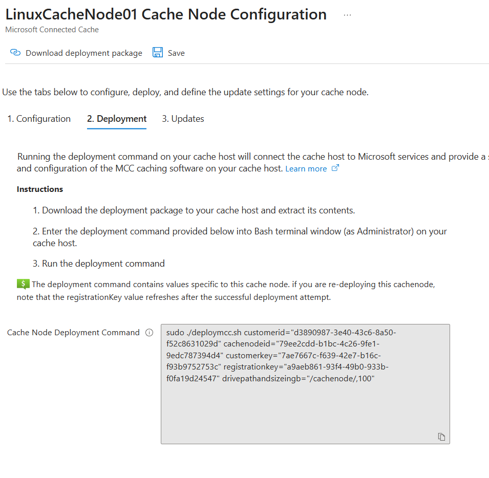 Copy and execute the Cache Node Deployment Command on the Linux node: