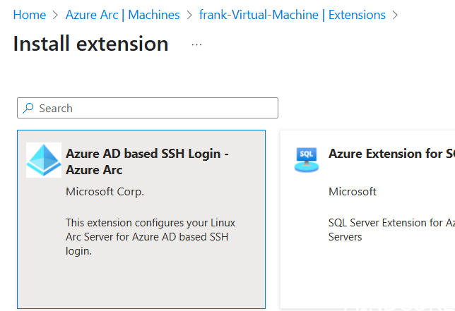 With a Linux machine already Arc onboarded, head over to extension and add the following one:
