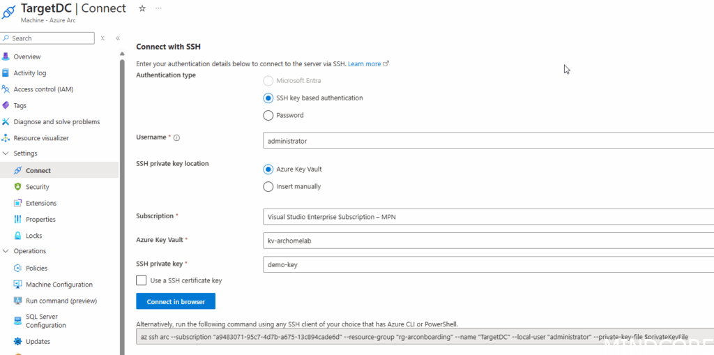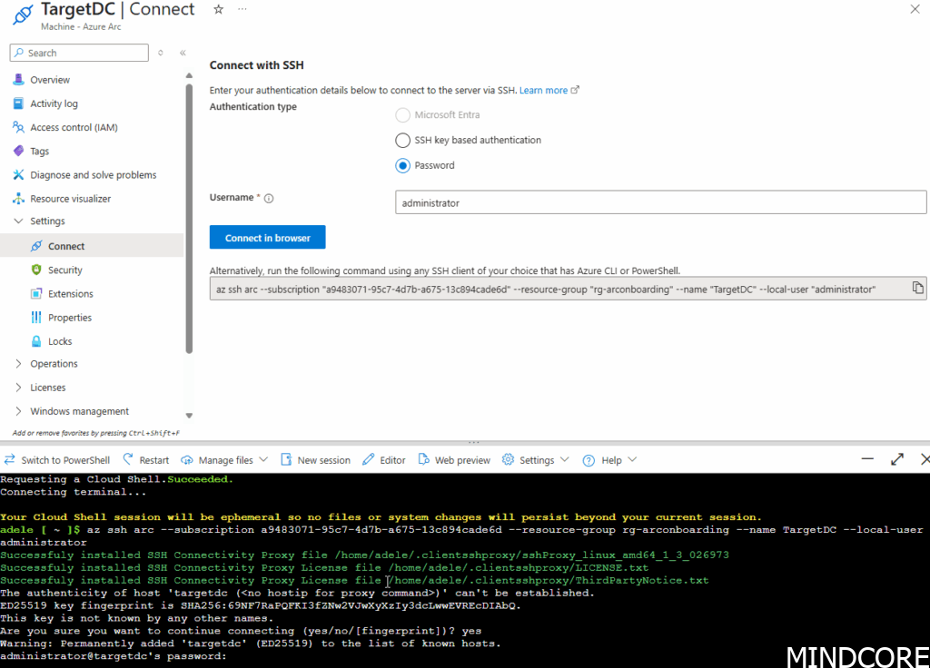 Also of note is that the SSH extension isn’t the only way to remotely execute things from Azure. As I’ve covered in a previous blogpost: Modern Server Management – Exploring Azure Arc Run Commands using Bicep – Mindcore Techblog
