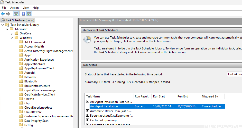 Back on the now freshly onboarded machine we can see the completed task within task scheduler: