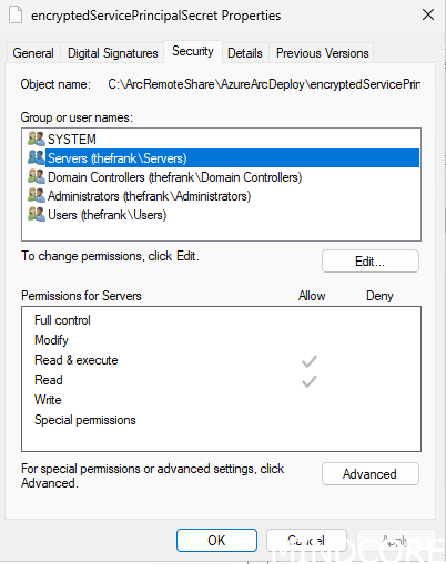 Technically, this means that the Service Principal secret could be recoverable from any NT_AUTHORITY\SYSTEM context in the domain. Again, this is why we ensure that the Service Principal has the lowest privilege possible and that the secret is rotated regularly. Once all machines are onboarded, the GPO should be disabled and this secret cleared out to ensure no one can enroll any other machines.