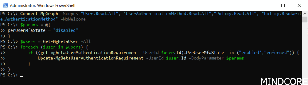 Update-MgBetaUserAuthenticationRequirement -UserId $user.Id -BodyParameter $params