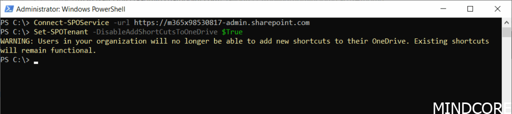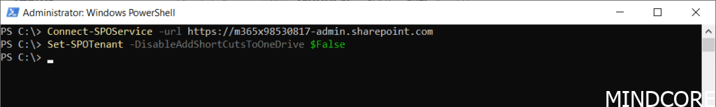 But let’s test out the option to remove Add shortcut to OneDrive using SharePoint Online Management Shell.
