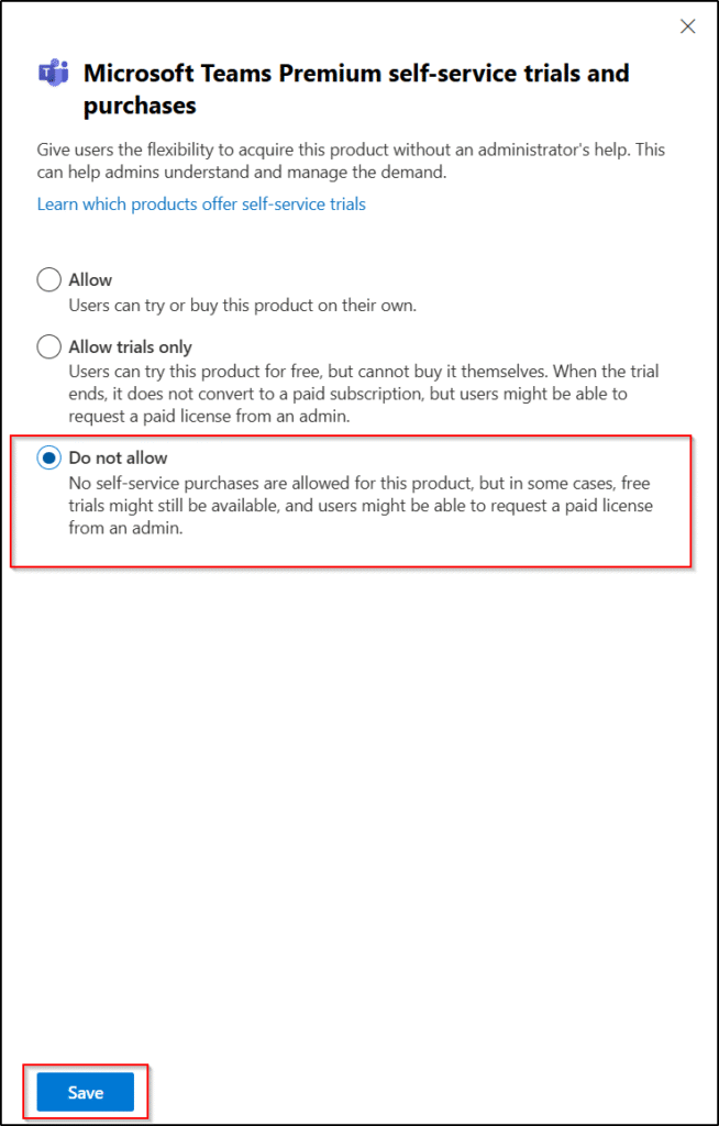 Here we can disallow self-service sign-up for Microsoft Teams Premium.