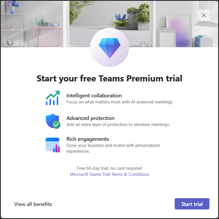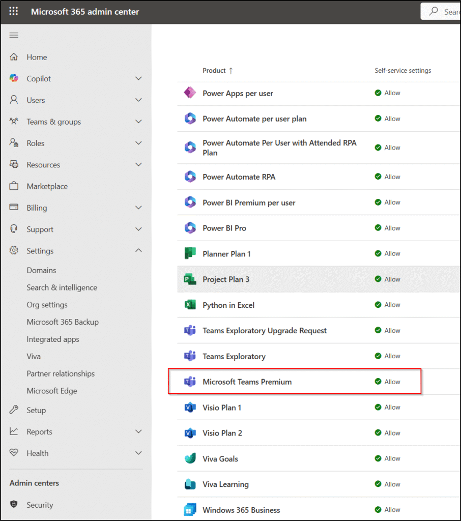 Teams Premium is not the only license that users can do self-service/trials set up and purchase on.