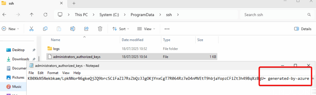 On the machine itself we can verify that a public SSH key has been installed: