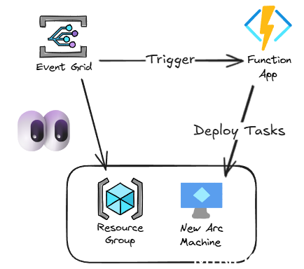 The goal for this automation was to provide a flexible system that will trigger whenever a new Arc onboarded VM is detected and perform a set number of tasks: