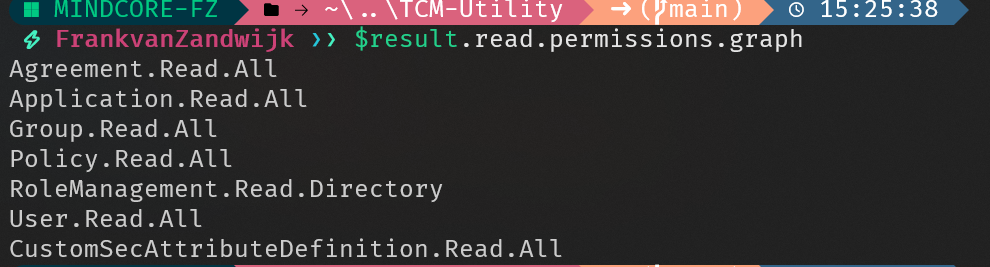 But it does not assign the required permissions to it. To do so, I used the TCM-Utility PowerShell module which made it super easy to determine which permissions I needed to assign to the service principal for the specific configurations I wanted to be looking at.
